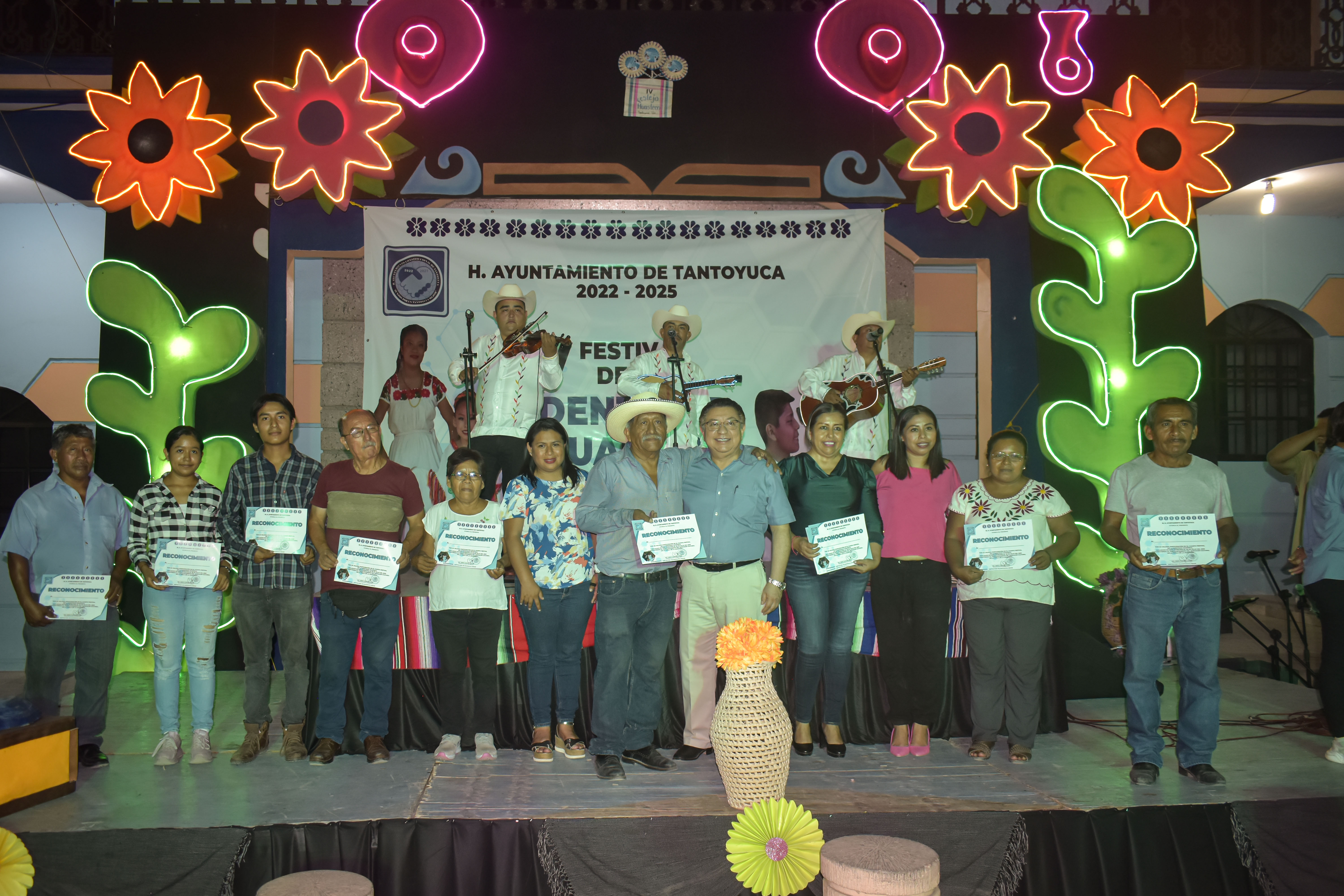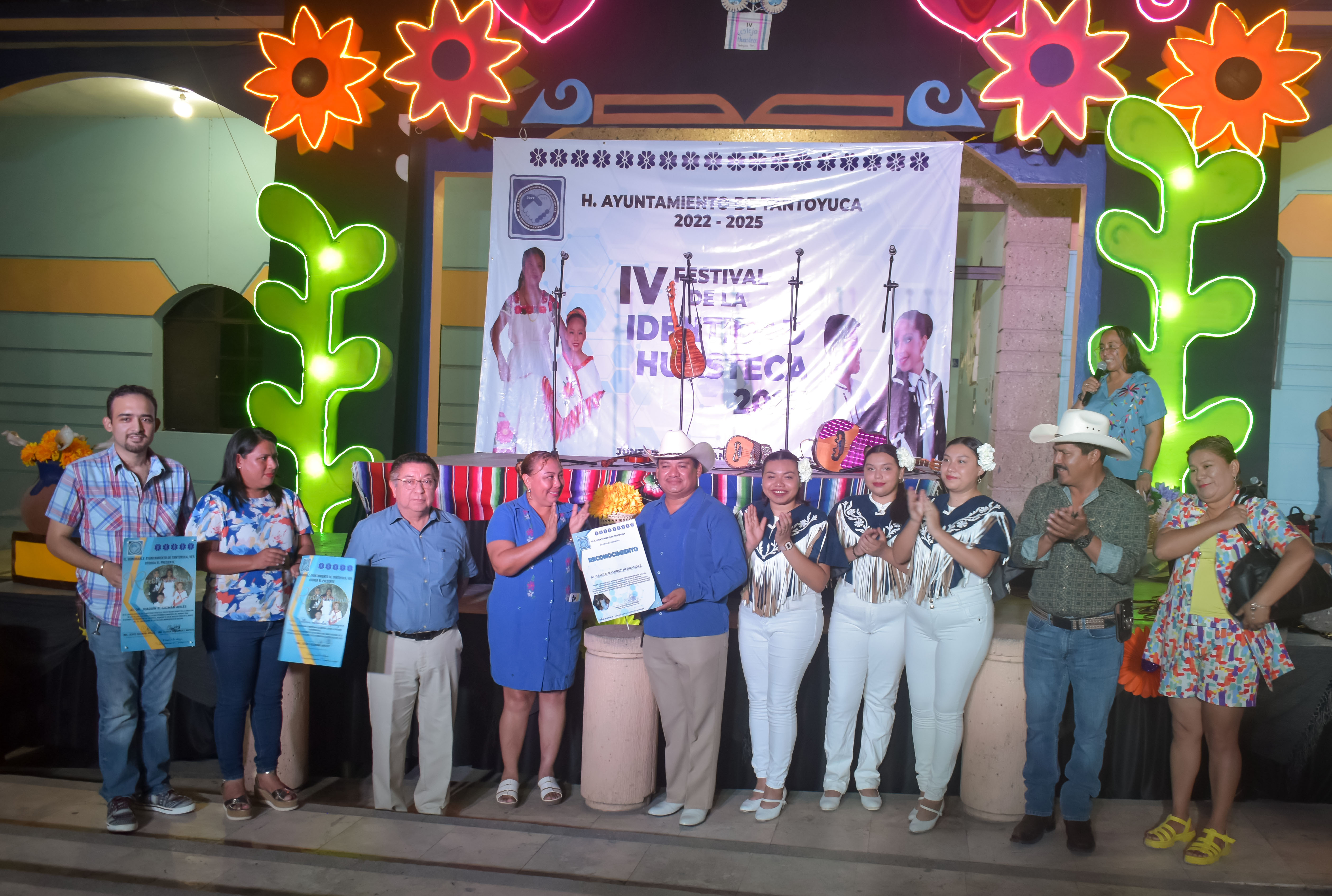 Al respecto el presidente municipal Jesús Guzmán informó “mira cumplimos un cuarto año ya del Festival de Identidad Huasteca, un festival que empezó hace algunos años, con gran esfuerzo el ayuntamiento ha ido promoviendo las artesanías, ha ido promoviendo nuestra cultura Huasteca, estamos promoviendo las fiestas y eso partes lo que nos corresponde en nuestra labor como ayuntamiento, esperemos una escuela de Educación en violín, guitarra, jarana, quinta guapanguera, zapateado, donde a más de 250 niños se les enseña esta herencia huasteca que no debemos de perder, es parte importante para nosotros el preservar la cultura y el preservar las costumbres que nos dan identidad como personas huastecas, como personas que realmente queremos convivir y seguir adelante con el esfuerzo de todos.