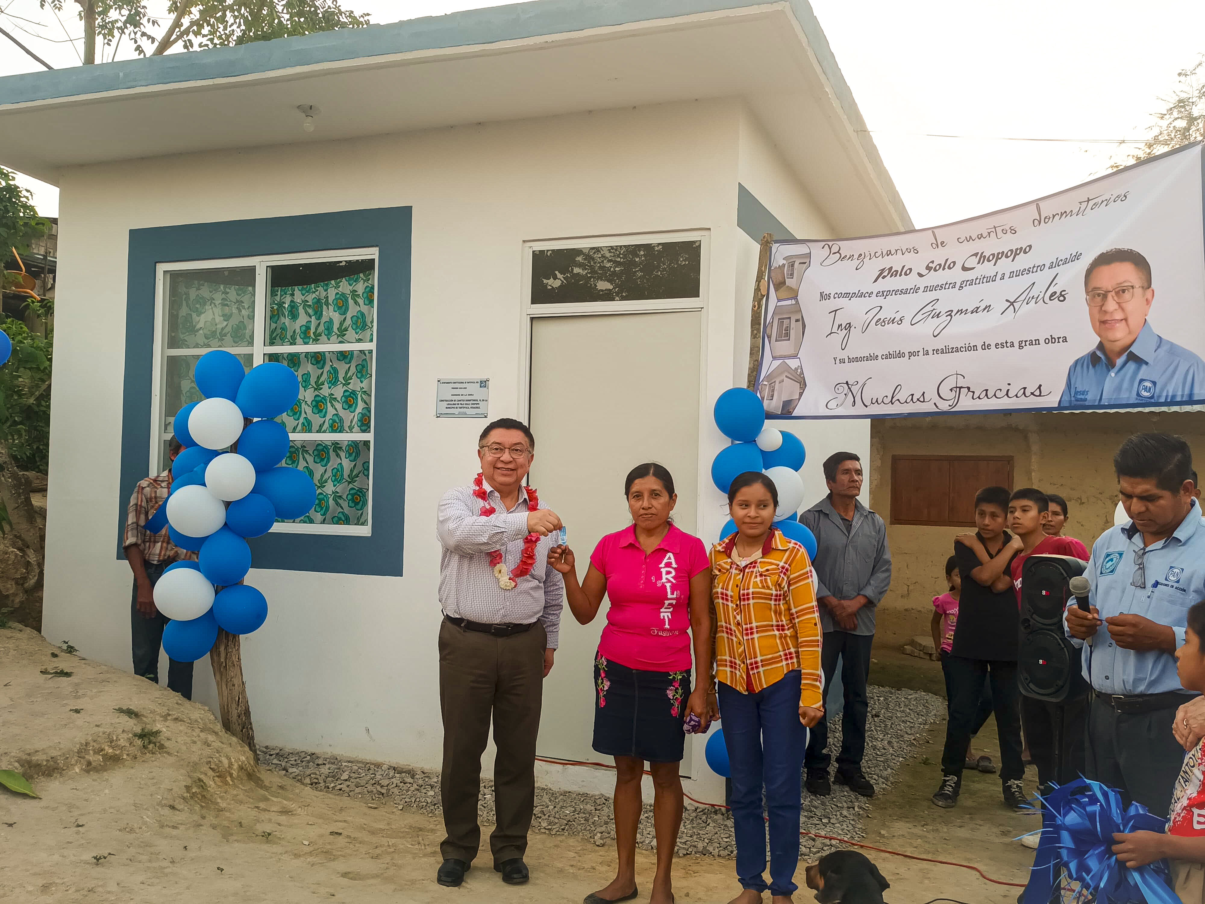 Mediante la entrega de cuartos dormitorio en la localidad de Palo Solo, Chopopo, el alcalde Jesús Guzmán Avilés ratifica su compromiso por llevar el bien común a cada rincón del municipio, atendiendo así a un sector vulnerable de la población.