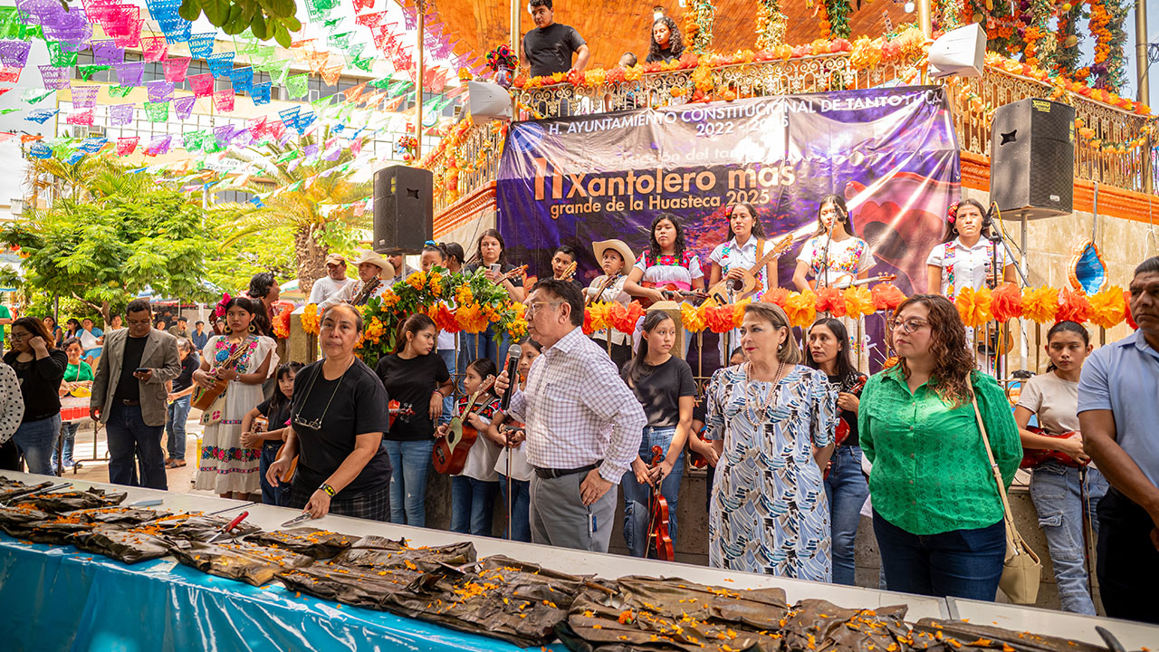 El alcalde Jesús Guzmán Avilés acompañado por la presidenta del DIF María de Lourdes Martínez de la Garza, en la 11va. edición de la exhibición y degustación del tamal Xantolero, explicó “es importante dar continuidad a la preservación de la cultura y las tradiciones ya que con eso se fortalece la identidad de cada uno de los habitantes de la cultura tenek y náhuatl que convergen en esta ciudad”.